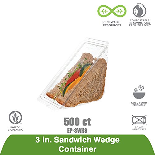 Eco-Products Renewable & Compostable Sandwich Wedge Containers, Case of 500 (EP-SWH3)