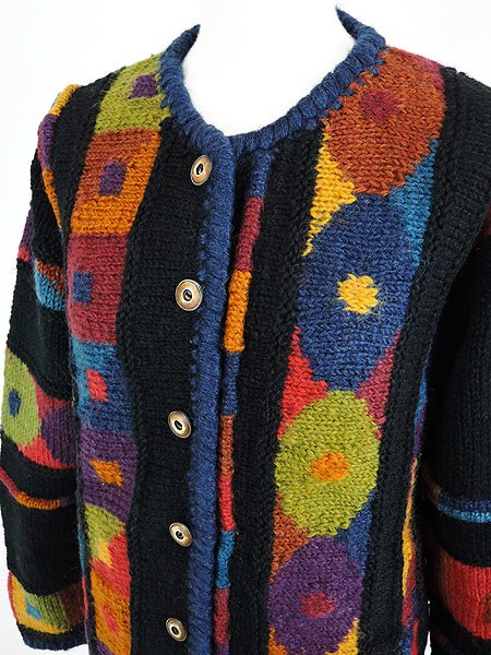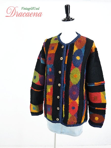 Ladies ブランド カラー黒・カラフル メール便不可 コンディション★★★ 素材ウール 表記サイズS/M 実寸サイズ 着丈 61 cm 身幅 52 cm 肩幅 50 cm 袖丈 51 cm ※ウエスト・ヒップ以外は平置き採寸