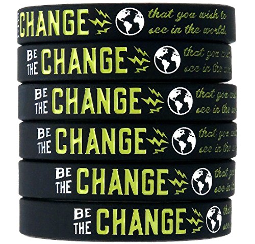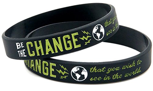 (10-pack) "Be the Change that You Wish to See in the World" - Inspirational Awareness Wristbands for Any Cause - Wholesale Bulk Pack of 10 Silicone Bracelets in...