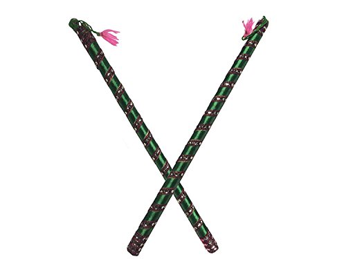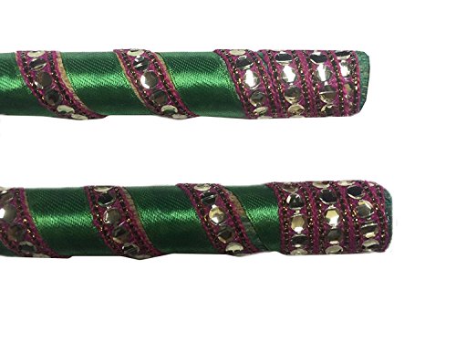 (Whopper Online)/Instrument Accessories/Drum Percussion Accessories/DIRECT FROM USA/Dandiya Sticks - Wooden stick, Pair of 2 Green Color Dandiya Shimmer Lace with stone Design, Sp...