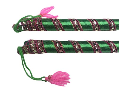 Product Description Wooden Handmade Traditional Dandiya Sticks. Green color Dandiya Sticks. One Small Bells on edge of each Dandiya Sticks. This Dandiya Sticks is Perfect for Navaratri Festival. This is made by Famous Artisian from Gujarat, India. 0