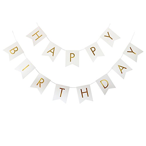 HAPPY BIRTHDAY Banner x 1pc Material: 300gsm cardstock. Color: white paper with gold foil letters. 3 Size: 16x20cm.
