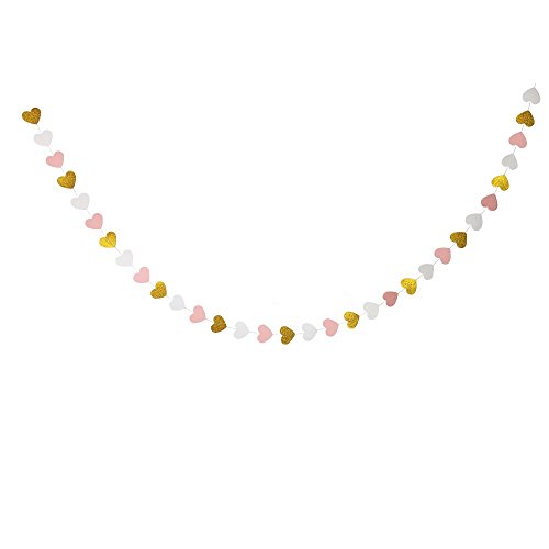 HEART PAPER GARLAND x 1pc Material: 210gsm glitter paper. Color: pink, white, gold glitter. Size: 7.5cm in diameter, 32 pcs in total. 0