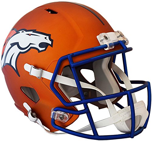 Studio : Fanatics Authentic Publisher : Fanatics Authentic Binding : Misc. Product Description The full size Riddell replica Revolution Speed helmet is made of plastic. It features a steel polyvinyl-coated face mask, 4-pt chin strap, and elliptical air vents. Team logo decals are displayed on the shell. This helmet is not for competitive play. Officially licensed by the National Football League. The new, distinctively fresh, yet familiar alternate helmet collection adds a colorful twist to your favorite NFL team helmet. Blaze Alternates utilize different color schemes for the shells and facemasks with a unique paint technique that gives the colors a distinctive glow. A must-have addition to any collection! memorabilia. Denver Broncos memorabilia 0