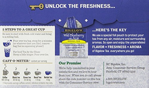 -. Title : Bigelow Tea Wild Blueberry with Acai Herb Tea, 20-Count (Pack of 6)