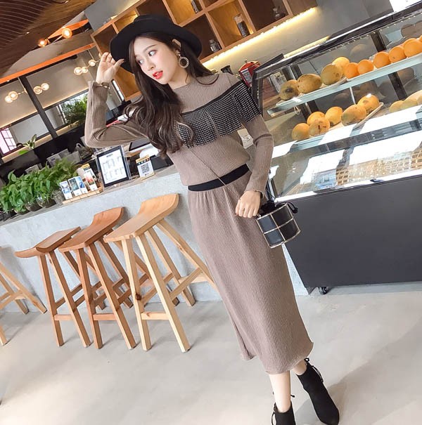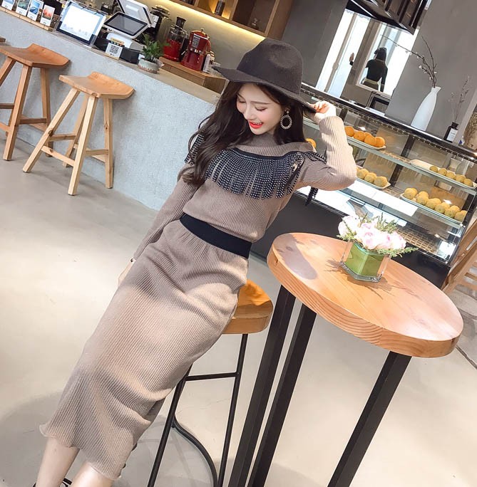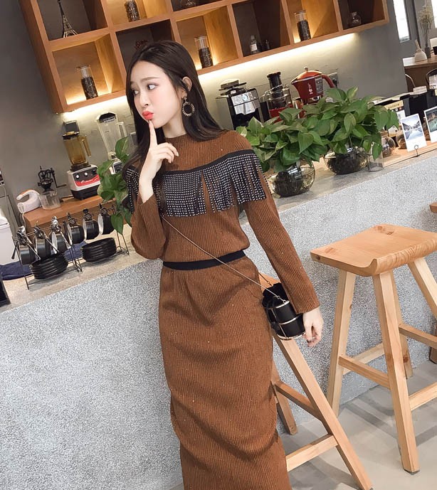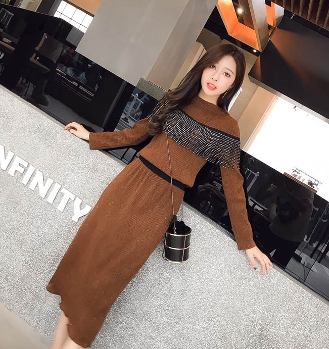 【入荷後営業日2,3日以内出荷予定 通関待ちや不良により出荷遅くなる場合はメールにてご連絡いたします。メール受信設定によっては正常に受信されない場合はございますので、 弊社からのメールを予め受信頂くようご設定くださいませ。】 2点セット ニット スカート ウエストゴム入り フリンジ 可愛い 長袖 レディス レディース 春 新作 2018ニットトップススカートの2点セット◆サイズ:M着丈上54下72袖丈54胸囲84ウエスト62L着丈上55下73袖丈54胸囲88ウエスト66XL着丈上56下74袖丈55胸囲92ウエスト702XL着丈上57下75袖丈55胸囲96ウエスト743XL着丈上58下76袖丈56胸囲100ウエスト784XL着丈上59下77袖丈56胸囲104ウエスト82◆素材:コットン、ポリエステル