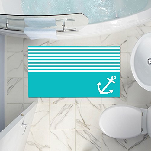 DiaNoche Designs Mfbm-OrganicSatTealLoveAnchNaut2 Bath and Kitchen Mats, Large 36 x 24 in