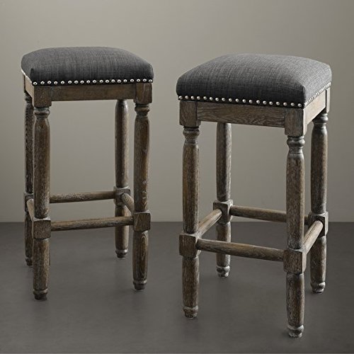 -. Brand : Renate -. Color : Grey -. EAN : 0685248537879 -. Feature : A great addition to just about any room in the house, these Renate bar stools add extra seating with style. / This set of two stools is constructed of solid wood, complete with a handcrafted reclaimed wood finish. / Set includes: Two (2) bar stools / Dimensions: 30 inches high x 14 inches wide x 14 inches deep / Seat dimensions: 30 inches high x 14 inches wide -. Label : Renate -. Manufacturer : Renate -. ProductGroup : Furniture -. ProductTypeName : HOME_FURNITURE_AND_DECOR -. Publisher : Renate -. Studio : Renate -. Title : Renate Grey Upholstered 30 inch Tall Bar Height Backless Stools (Set of 2) -. UPC : 685248537879
