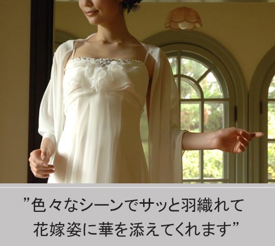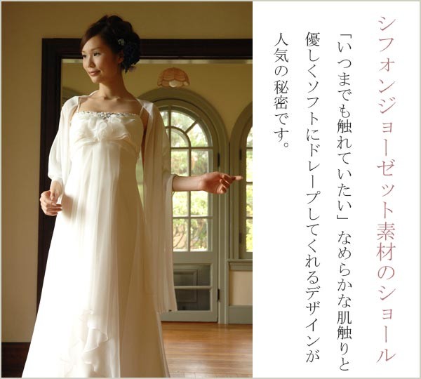 満足でした 3月の結婚式で肌寒かったので急遽買いました。 やわらかくしなやかな布地で肌触りがよく、シルク100%の高級感あるウエディングドレスだったのですが、質感もぴったりで大変満足でした。