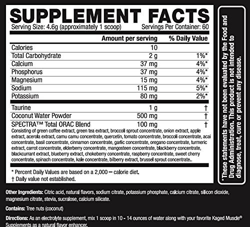 Customize your KAGED MUSCLE flavors by adding Hydra-Charge to your favorite supplements. Hydra-Charge is a powerhouse of flavor that provides you with calcium, phosphorous, magnesium, sodium, and potassium to ensure you get the vital micronutrients you need to crush the weights every workout.* It supports hydration and the body’s natural defenses before, during, and after intense training.* What’s more, Hydra-Charge has five essential electrolytes from 500 mg of freeze-dried coconut water for superior hydration support and is combined with SPECTRA, which is scientifically balanced to support antioxidant potential.* The SPECTRA high oxygen radical absorbance capacity (ORAC) antioxidant fusion works to boost your body’s natural defenses by combating free radicals within the body.* Taste is the top of the hit list with your supplements?and Hydra-Charge doesn’t disappoint. Each serving of Hydra-Charge electrolyte drink powder is made from a unique combination of vegetable, fruit and herbal extracts and concentrates and is naturally flavored for an amazing taste. Hydra-Charge also contains 1 g of taurine, a mind enhancing ingredient that helps you get focused and in the zone each and every time you train.* Taurine is also a well-researched regulator of cell volume because it regulates fluid balance.* As a result, taurine helps maximize muscle function and has been noted to be a potent cell volumizer.* This means not only will your muscle bellies appear bigger, they’ll also be provided an indirect stimulus for muscle growth.* Hydra-Charge is free of banned substances and third-party tested, so it’s safe for any athlete to use. Each container has 100% label transparency, so you know exactly what you’re putting into your body. Give your supplement stack an added boost of flavor, and help prime your muscles for optimal growth! Hit Add to Cart now! *These statements have not been evaluated by the Food and Drug Administration. This product is not intended to diagnose, treat, cure, or prevent any disease. 0 |