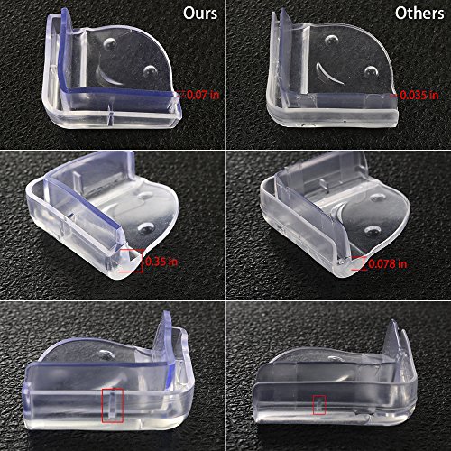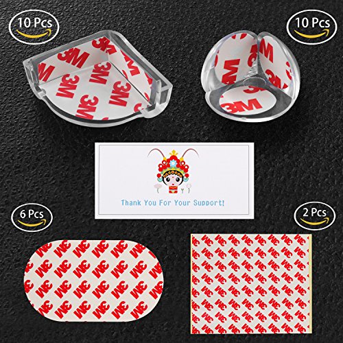 How to Install 1. Clean surface and let it dry completely. (We recommend rubbing alcohol for most surfaces but may not be applicable for all surfaces.) 2. Remove backing and fix the corner on furniture, then smooth out any air bubbles. 3. Press and hold each side firmly for at least 30 seconds. Wait at least 48 hours for full adhesion before testing. Easy to Remove 1. Use a warm cloth on the corner and allow adhesive to soften. 2. Gently peel back the edges of the caring corner. 3. Roll away any remaining adhesive, and clean the surface.(Use carefully when removing from painted or stained surfaces.) Specifications 1 Material type: PVC 2 Material free: Phthalate Free, Lead Free, BPA Free, Latex Free 3 Best uses: table corner protectors; furniture art decors 4 L Shape Size: 4.3*4.3 cm(1.69*1.69 inch) 5 Ball Shape: 3*3 cm(1.18*1.18 inch) 6 L Shape Weight:12g 7 Ball Shape Weight: 10g 8 Number of items: 20 Package Include 10 L-Shaped Corner Guards 10 Ball-shaped Corner Guards 2 Set 3M Taple for L-Shaped 2 Set 3M Taple for Ball Shaped (One Set is enough for 10pcs) 0