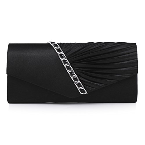 The graceful large evening bag is designed with half pleated flap and half flat flap,which are separated by a line of crystals and rhinestones.It features magnetic hasp closure and a long detachable silver chains(drop 60cm/23.62 inch) which offers versatile carryng options as handbag ,clutch ,a shoulder bag or a crossbody bag. The bag is so roomy that it is large enough for your mobile phone ,cash ,cards ,lipstick,jewels and other important items.The bag is so royal, noble and brilliant that it will be a perfect status symbol and a bold gift for femininity.Suitable for wedding party, family reunion, prom, banquet and cocktail party and so on .