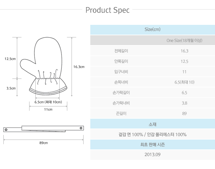 サイズ:表参考 One Size (18ヶ月以上) 総丈 16.3 内側の長さ 12.5 入り口幅 11 手首周り 6.5(最大10) 指の長さ 6.5 指周り 3.8 紐丈 89 単位:cm