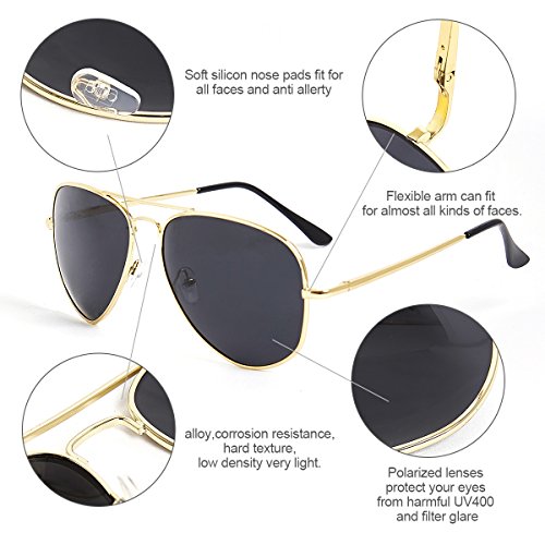 Sunglasses for Women Men by HBY, Classic Aviator Polarized Sunglasses Mirrored UV400 100% UV protection