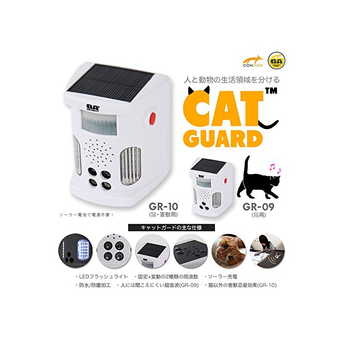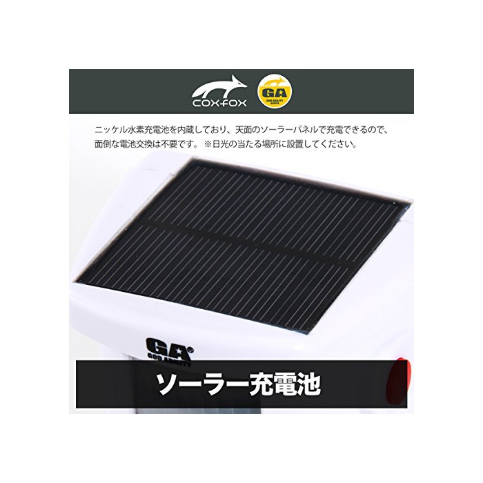 원본상품명: coxfox キャットガ?ド 猫害?用 【ソ?ラ?電池で電源不要】 超音波式 LEDフラッシュライト?備 【カンタン設置】 据え置きタイプ 耐水防塵性能(IP65) GR-10