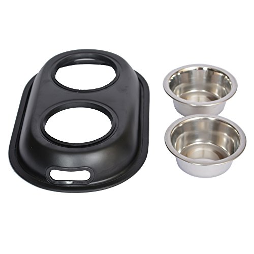 Product Description The Iconic Pet double diner has a colorful exterior that hold two stainless steel pet feeding bowls. Select the color to blend with your home decor. 0