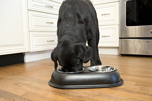 (Iconic Pet)/Pet Supplies/Feeding Watering Supplies/DIRECT FROM USA/Iconic Pet 4-Cup Color Splash Stainless Steel Double Diner for Dog/Cat, 32-Ounce, Black