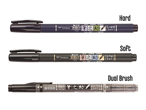 Tombow Fudenosuke Brush Pen 3 Type Set, Hard (GCD-111), Soft (GCD-112), Dual Brush(GCD-121), Original 5 Colors Sticky Notes