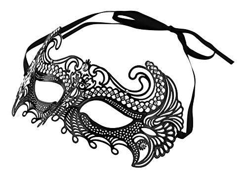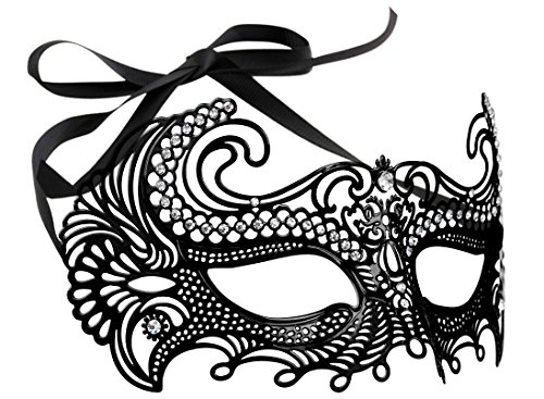 -. Brand : Maskette -. ClothingSize : 1 size fit all -. Color : Black -. Department : womens -. Feature : Composed of lightweight metal for maximum comfort / Filigree metals are soft and bendable so they can be easily adjusted to face / Unique laser cut design adorned with brilliant cut crystal rhinestones / Secured with 2 ribbons for perfect fit / Great for Halloween, Mardi Gras, masquerades and parties -. Model : MK-5027 -. PackageQuantity : 1 -. ProductGroup : Apparel -. ProductTypeName : CHILDRENS_COSTUME -. Size : 1 size fit all -. Title : Designer Metal Filigree Venetian Mask with Rhinestone Embellishments -. UPC : 845963250273