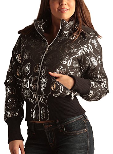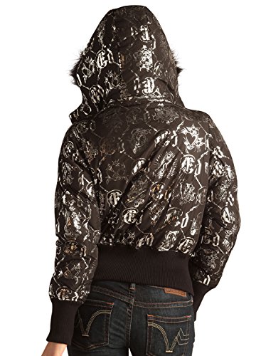 The Ed Hardy Womens Logo Puffer Jacket is a very warm and plush down puffer jacket that will really keep you warm and stylish during the cold winter time. It features the Ed Hardy Logo print. It also features front zipper closure, removable hood with snaps and two side zipper pockets. Signature Hardware. This Ed Hardy Jacket is a must to have to your winter wardrobe!Feature