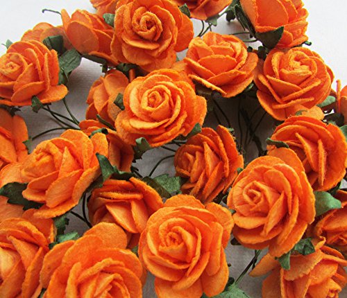 40 pcs Rose 25-30mm Orange Mulberry Paper Flowers handmade craft project cardmaking Floral Valentine