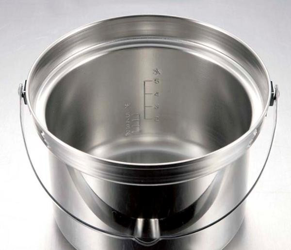 | 熱効率がよく、おいしく炊ける。本体側にお米とお水の分量を量る目盛付き。5合炊きの3層鋼ステンレス製ライスクッカーです。 |