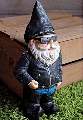 - ADD A WHIMSICAL LOOK TO YOUR HOME GARDEN: Transform your outdoor spaces and evoke a humorous charm with this funny biker gnome in motorcycle leather jacket, boots and black shades. This unique stature will instantly enhance your garden décor and elicit lots of chuckles among your visitors!