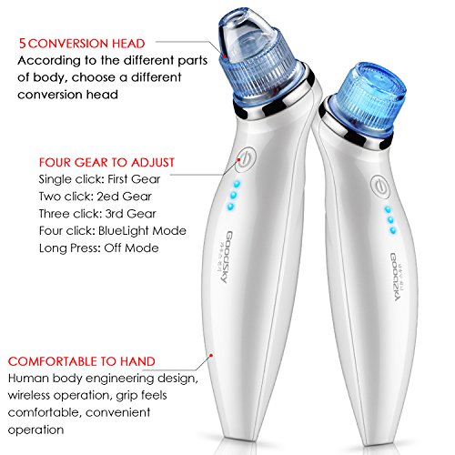 - 4 DIFFERENT GRADE INTENSITY ONE BUTTON CONTROL- suck the blackheads and pimples, especially for the target pore dirty only control by one button.Ergonomic design is easy to hold and never drop:18cm x 4.5cm x 4.5cm/7.09”x 1.77”x 1.77”.