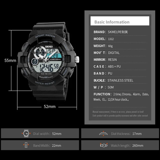 SKMEI 남성 시계 최고 럭셔리 남성 석영 시계 아날로그 시계 Led 시계 남성 스포츠 크로노 경보 일주일 Relogios Masculino 1312 배송: 1. 우리는 우리의 모든 항목을 전세계 EMS/UPS 또는 중국 홍콩 포스트, 배송 방법은 달라집니다 총 주문 수량.