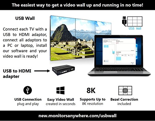 -. Title : Monitors AnyWhere USB Wall - Display your content on a video wall using a standard PC or laptop! Game Changer for video walls! HDMI over USB, USB to HDMI,ThinGlobal MiniPoint USB adaptor