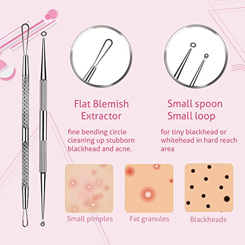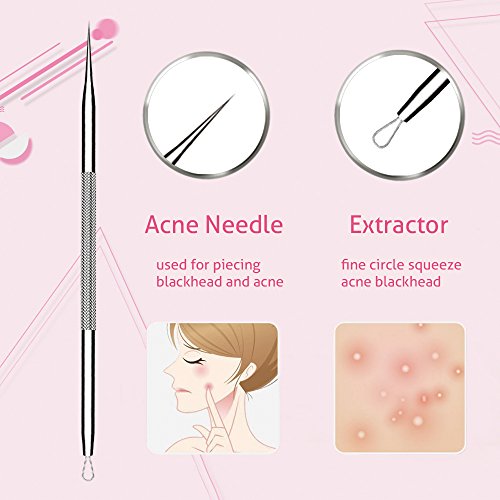 Multil-FUNCTIONAL:The five pimple extractor tools are surgical grade and perfect for popping pimples, pinching zits, squeezing whitehead,removing acne and blackheads.
