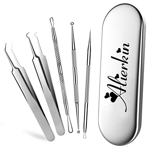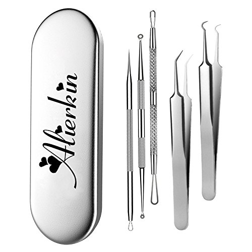 AlierKin Professional Surgical Blackhead Remover Tools,Blackhead Remover and Comedone Acne Extractor Tool Set Treatment for Blemish Zit Pimple,Metal Case