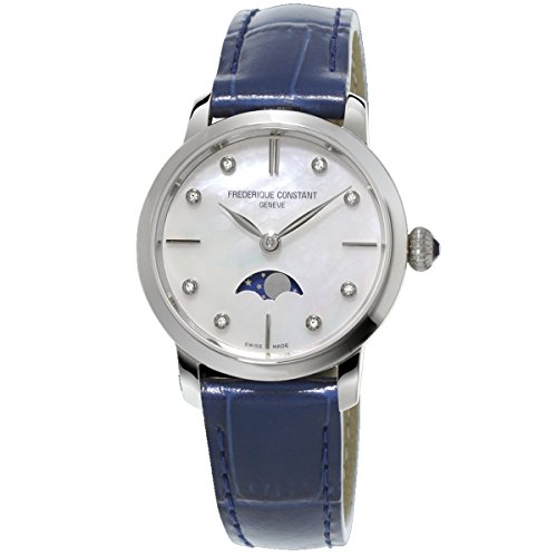 -. Title : Frederique Constant Slimline Moonphase FC-206MPWD1S6 30mm Diamonds Stainless Steel Case Blue Leather Synthetic Sapphire Women's Watch