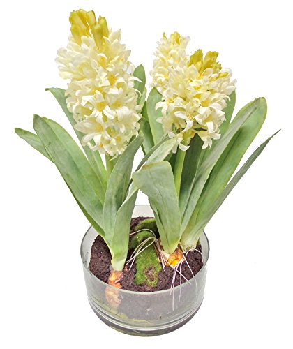 Gold Eagle USA Artificial White Hyacinth Plant with Soil and Large Glass Vase, 16"