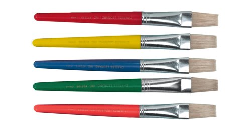 With over 70 years of commitment and still going strong, Charles Leonard, Inc. is a second generation family owned business. We take pride in our relationship with quality and value, which goes back to day one. The Charles Leonard flat stubby brushes feature brightly colored 7 1/2" plastic handles. Natural hog bristles are held in a seamless aluminum ferrule. Paint brushes are color coded to match the Creative Arts spill proof paint cups, making them a great set!Feature