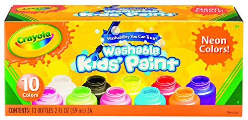 Let your kids imagination run wild without worrying about the mess while adding a vibrant, iridescent look to their creative masterpieces. Crayola Washable Paint is a non toxic water based paint that is most excellent for crafts and school projects. Decorate book covers, signs and posters. Can be used with brushes, stamps or sponges to create interesting patterns and designs.