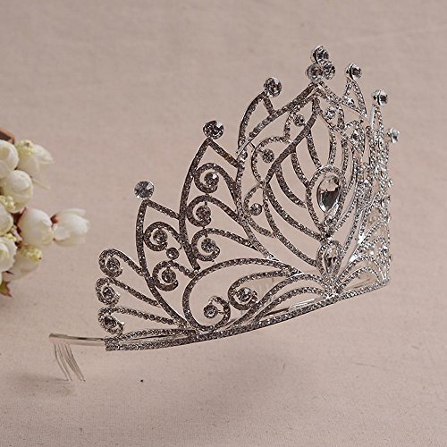 - One size fits all:It's an tiara with combs, 15 cm wide,and 11.5 cm tall.