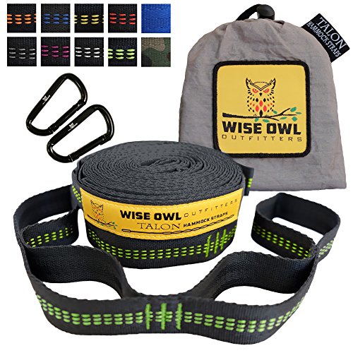 Wise Owl Outfitters Talon Hammock Straps - Combined 20 Ft Long, 38 Loops W/ 2 Carabiners - Easily Adjustable, Tree Friendly Must Have Gear For Camping Hammocks Like Eno
