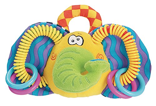 This is a great little toy that is the perfect size for little hands to hold. The colors and textural variety aid in motor, visual and tactile development, while the plastic rings soothe those sore gums when teething.