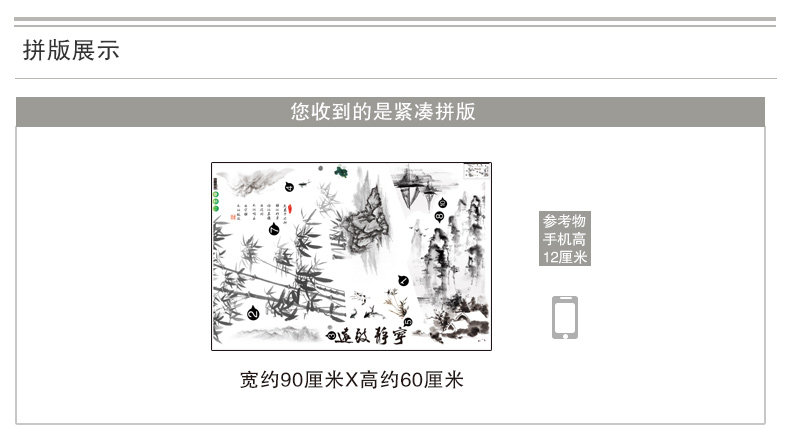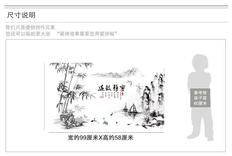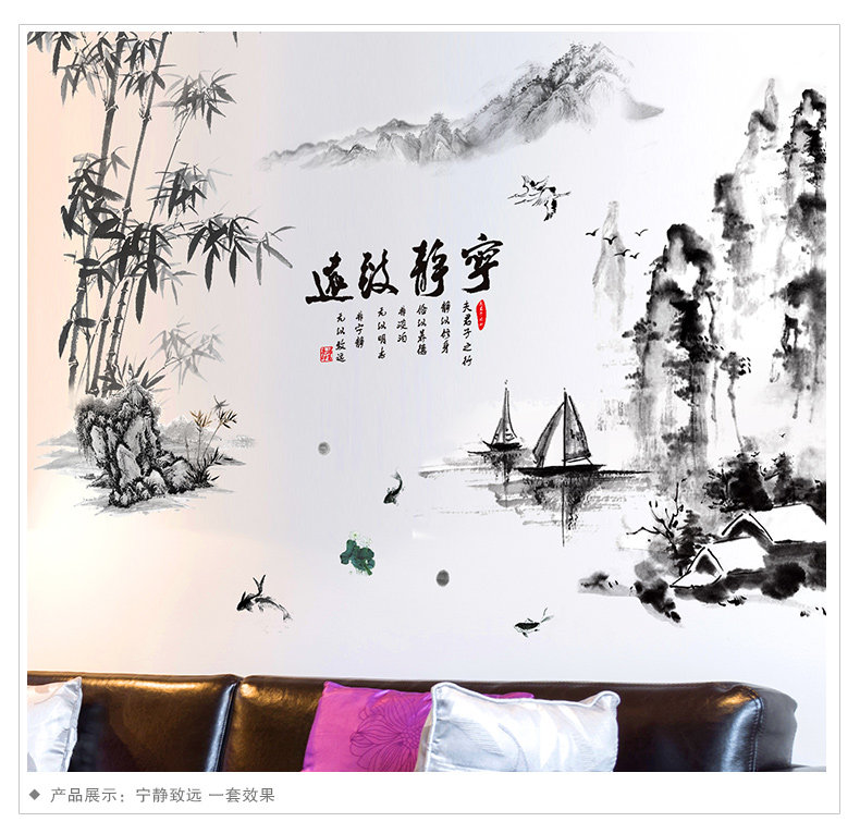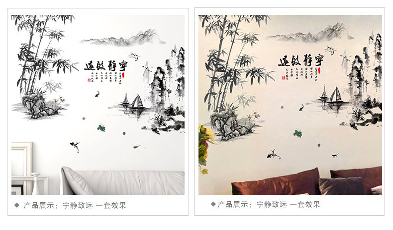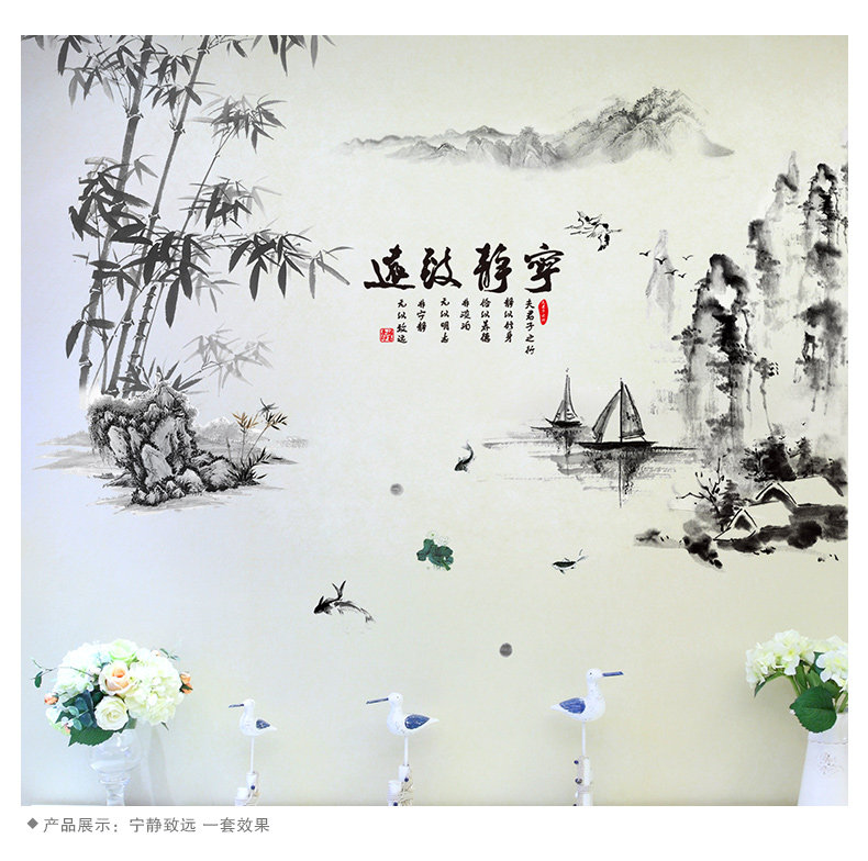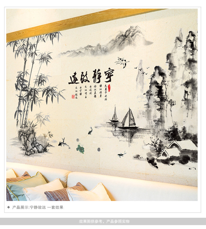 墙贴纸贴画中国风风格水墨画山水画竹书房办公室墙壁装饰宁静致远