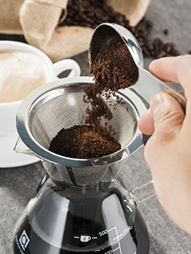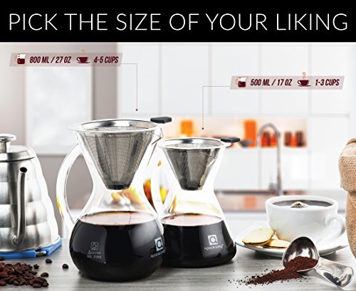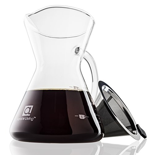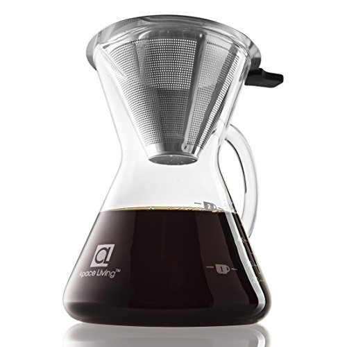 Apace Living Pour Over Coffee Maker (400 ml / 13.5 oz) and Coffee Scoop – Coffee Dripper with Glass Carafe & Permanent Stainless Steel Mesh Filter (2-3 Cup Size)