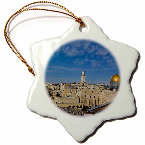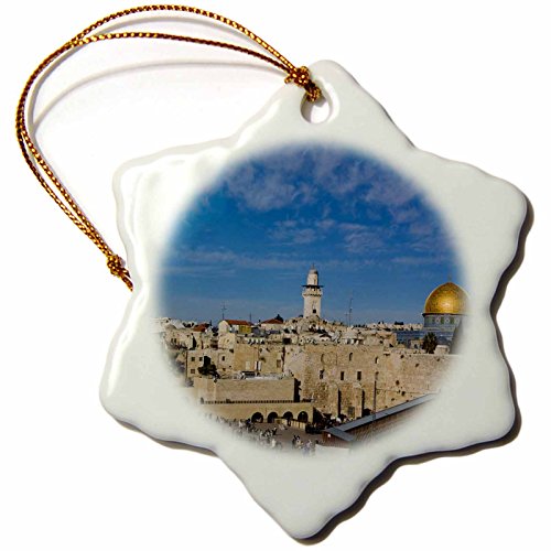 3dRose LLC orn_72719_1 Porcelain Snowflake Ornament, 3-Inch, "Israel, Jerusalem, Western Wall and Dome of The Rock-Aldo Pavan"