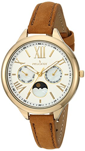 Peugeot Women's '14K Gold Plated' Quartz Metal and Suede Casual Watch, Color Brown (Model: 3053)