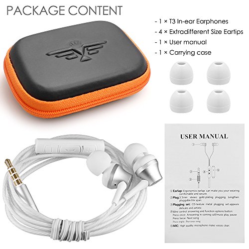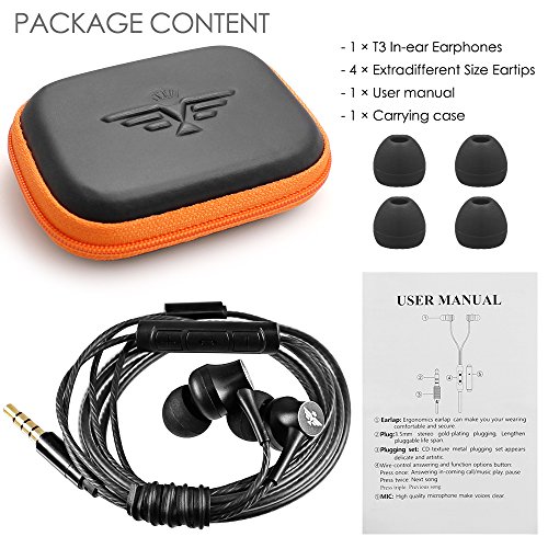 -. Title : Earbud Headphone with Volume Control, AFUNTA Stereo In-Ear Earphone 3.5mm with Microphone Noise Isolating Ergonomic Comfort Fit for Cell Phone Laptop PC Tablet iPhone Samsung Sony iPad