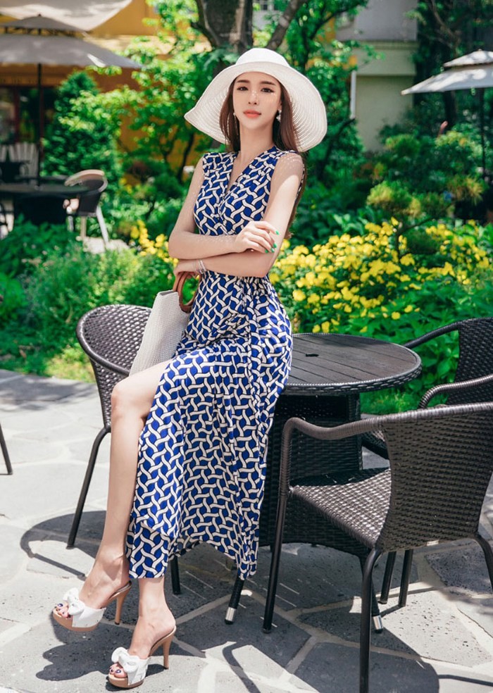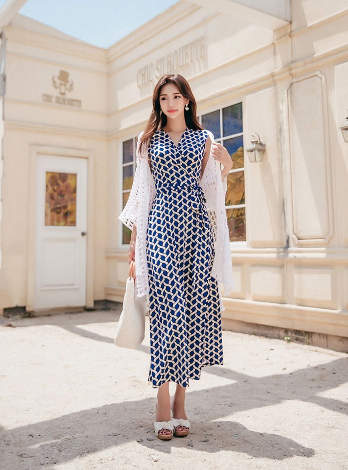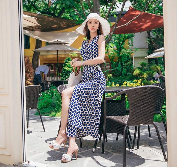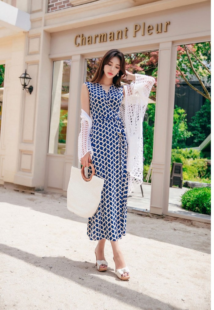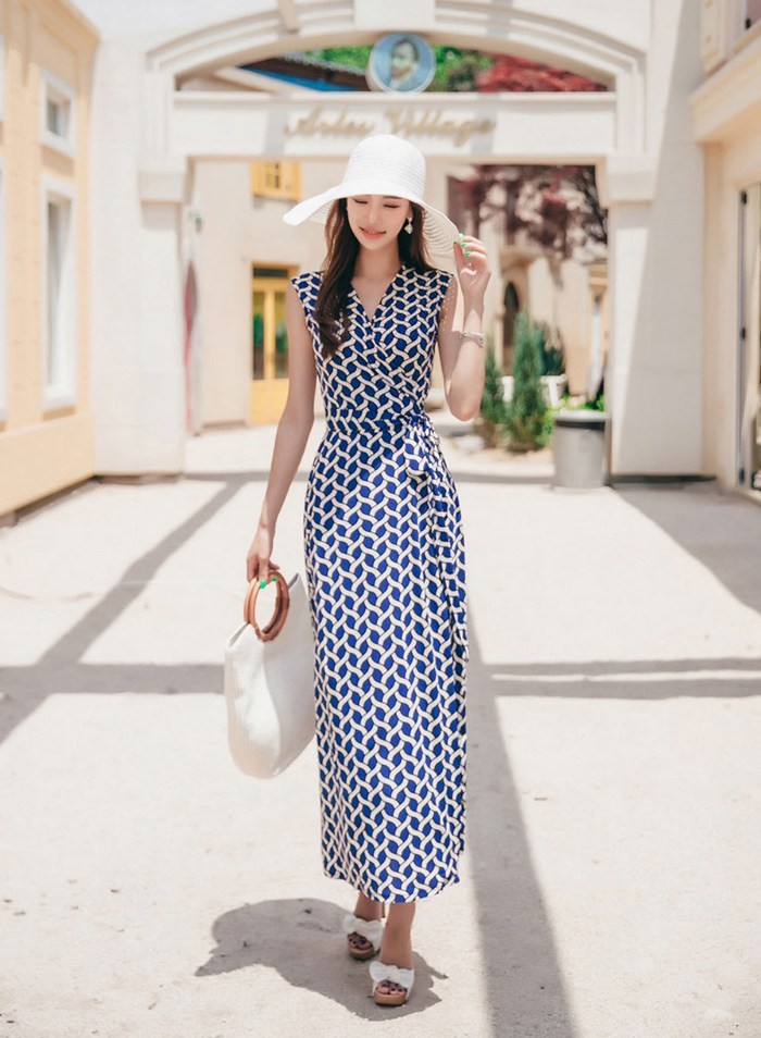 商品名:カシュクールワンピース ノースリーブ ロング丈 マキシ丈