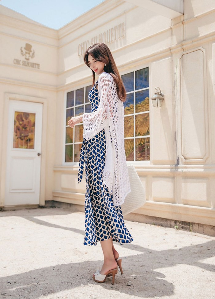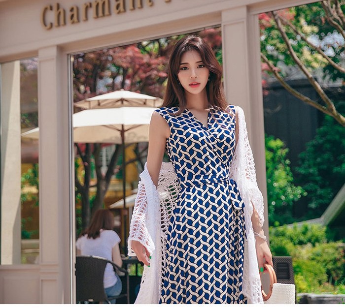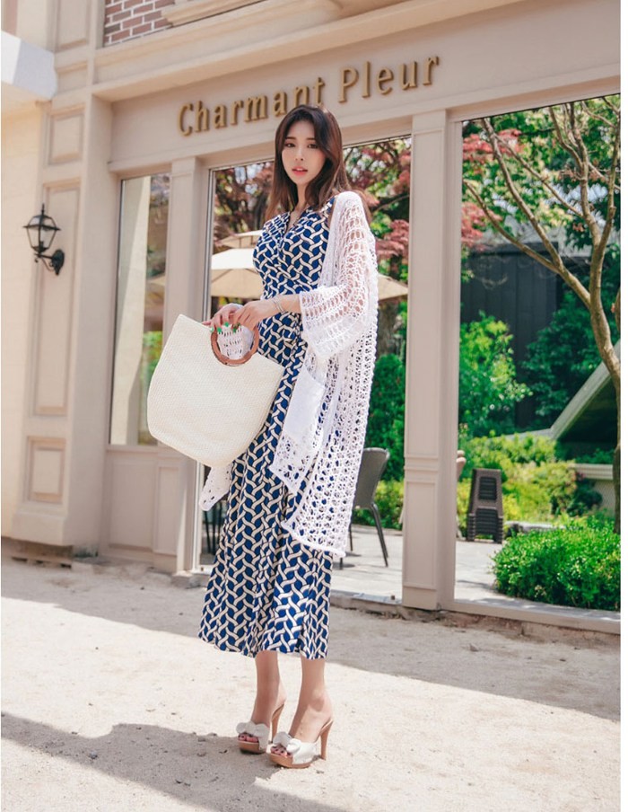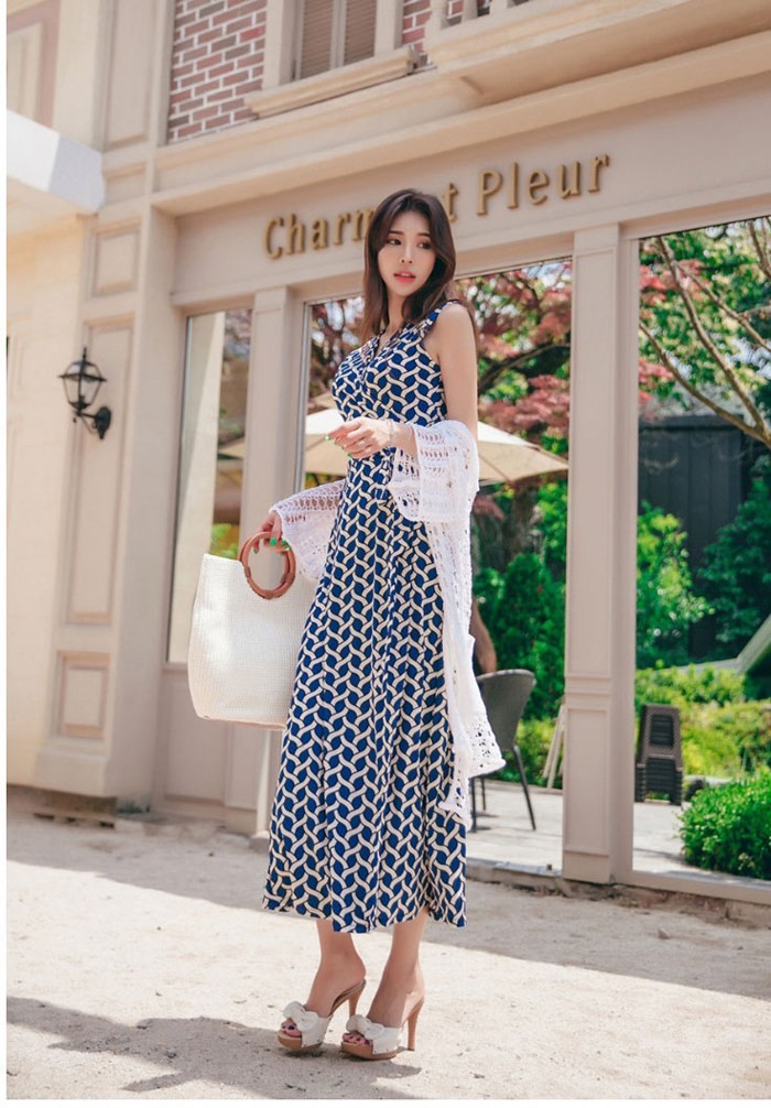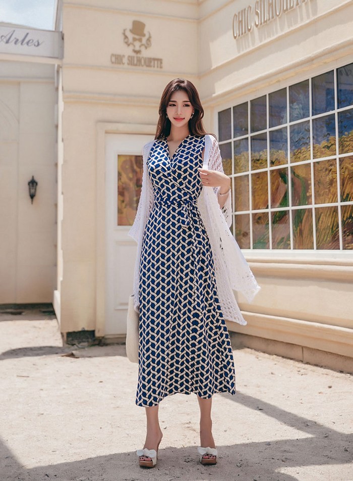 商品名:カシュクールワンピース ノースリーブ ロング丈 マキシ丈