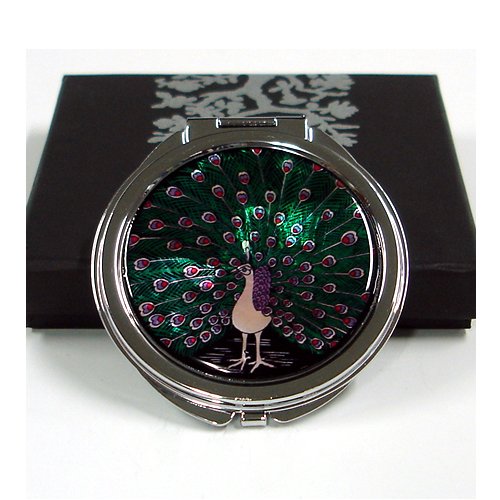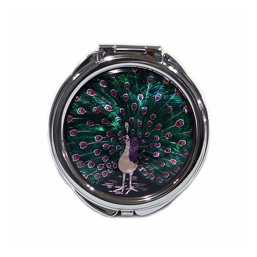 Mother of Pearl MOP Peacock Design Vanity Purse Handbag Double Compact Cosmetic Mirror,3.2 Ounce