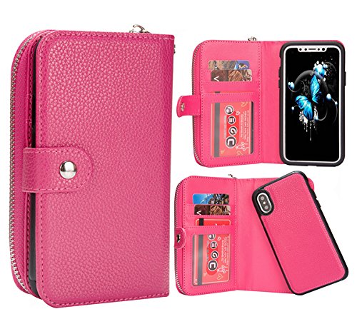 -. Title : iPhone X Wallet Case, Hynice Detachable Magnetic Zipper PU Leather Flip Wallet Purse With Card Slots Holder Wristlet Strap Removable Slim Hard Protective Cover for iPhone X 5.8 inch
