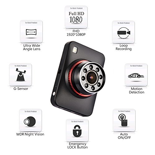 Te-Rich 2.7" Full HD 1080P Car Dash Cam Wide Angle DVR Camcorder Video Recorder Vehicle Dashboard Camera with Superior Night Vision / G-Sensor / Parking Mode / WDR / 16GB Micro SD Card