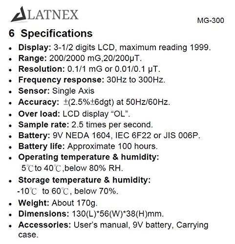 LATNEX MG-300 LF magnetic Field Meter, Measures EMF Radiation from High-Power Transmission Lines, Appliances, Electrical Wires - Used for EMF Home Inspectios